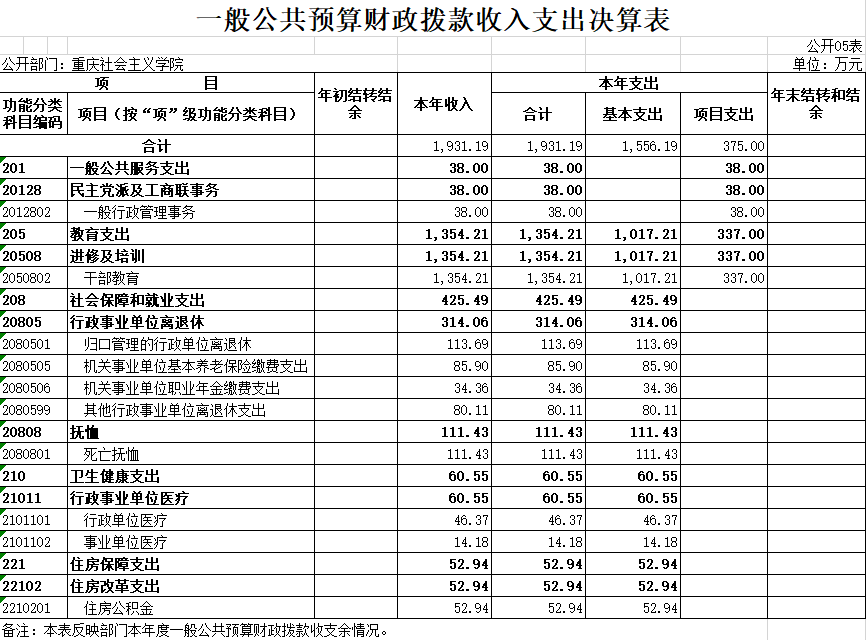 从预算单位构成看,纳入本部门2019年度决算编制的二级预算单位主要包括重庆社会主义学院。