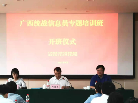 6月1日至5日,广西自治区党委统战部在重庆社会主义学院举办全区统战信息员专题培训班。自治区党委统战部部务会成员邓国忠出席开班仪式并作动员讲话,重庆社会主义学院党组成员、副院长唐平出席开班仪式并致辞。51名来自广西自治区市县三级统战部门、自治区统战系统单位以及民主党派广西区委的统战信息工作负责同志以及部分民主党派成员参加了此次培训。