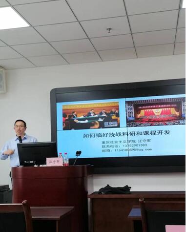 此行,汪守军还为江津社会主义学院全体教师作了《如何搞好统战科研和课程开发》专题讲座。